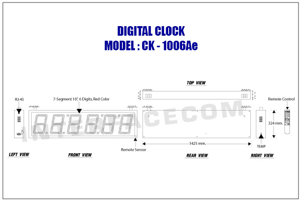 - สามารถแสดงเวลาเป็น ชั่วโมง นาที และ วินาที ได้ - สามารถแสดง วัน เดือน ปี (ค.ศ.) ได้ - สามารถแสดงอุณหภูมิได้ (องศาเซลเซียส) - สามารถตั้งระยะเวลาในการแสดงเวลา วันที่ และ อุณหภูมิ ได้อย่างอิสระ - สามารถใช้เป็นนาฬิกาจับเวลาได้ - สามารถตั้งนาฬิกาให้ จับเวลานับเดินหน้า หรือ นับถอยหลังได้ - สามารถตั้งเวลาเปิด-ปิด อุปกรณ์ไฟฟ้าได้ 10 ช่วงเวลาในหนึ่งวัน - สามารถต่อพ่วงเป็น Network (RS485 Two Wire Multi-drop) ได้สูงสุดถึง 255 ตัว (ไม่ต้องมีอุปกรณ์ในการต่อพ่วง)โดยจะเทียบเวลาจากตัว Master - สามารถควบคุม และตั้งค่าต่างๆ ที่ตัวนาฬิกาได้โดยตรง - ปรับความสว่างของนาฬิกาได้ 10 ระดับ 0-9 |